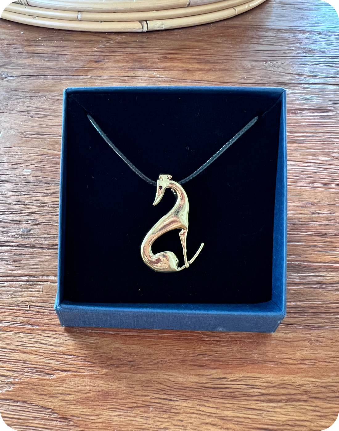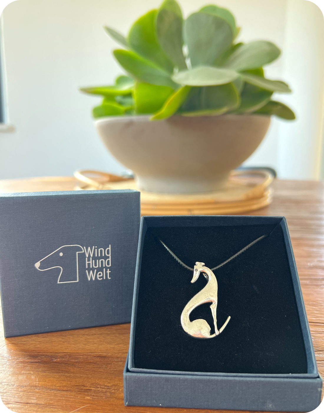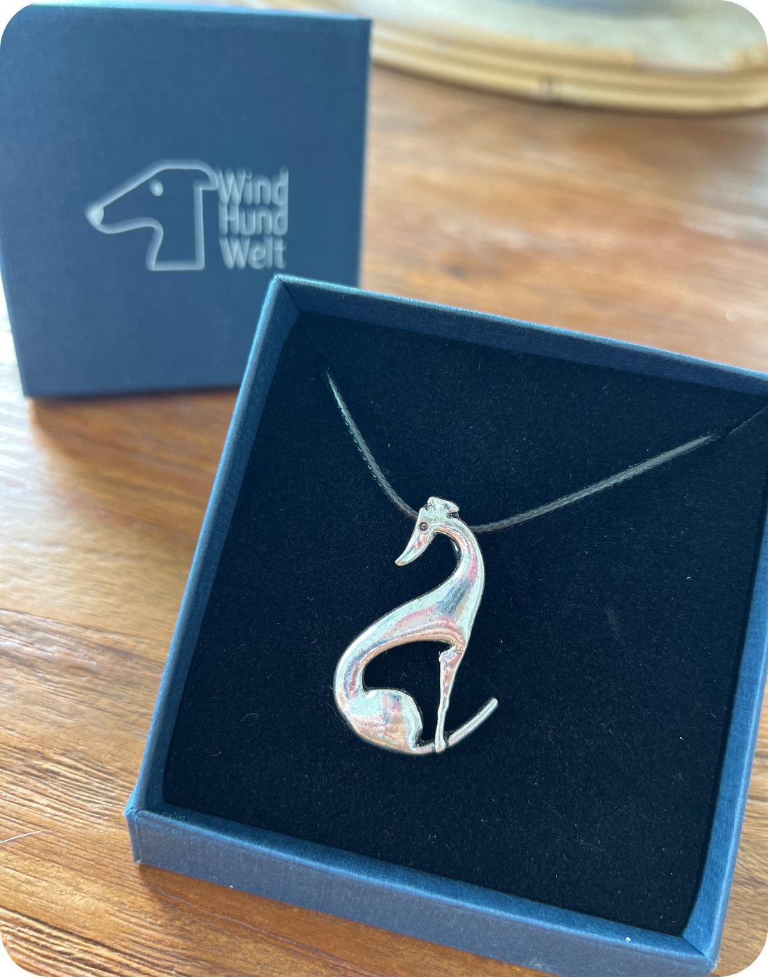 Unsere "Grey Elegance" Kette fängt die Schönheit und Anmut des Galgos in einem stilvollen Schmuckstück ein. Der zarte Galgo-Anhänger, fein gearbeitet und detailliert, spiegelt die Eleganz dieser wunderbaren Rasse wider. Er ist das perfekte Accessoire für all jene, die die Grazie und den Charme eines Galgos verehren und ihn als Symbol für Lebensfreude und Liebe tragen möchten.